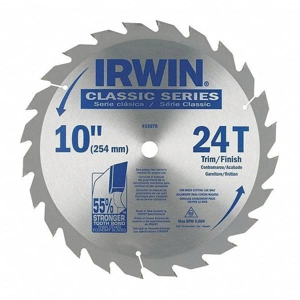 Circular Saw Blade, Blade Dia. 10 in, Diamond Knockout Yes, Number of Teeth 24, Tip Material Steel, Hook Angle 22 Degrees , Tooth Grind ATB, Blade Type Combination, Plate Thickness 0.071 in, Application For Framing/Ripping
