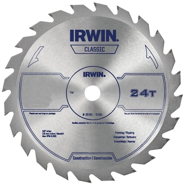 Irwin 15070 Circular Saw Blade, 10 In Dia, 58 In Arbor, 24Teeth, Carbide Cutting Edge
