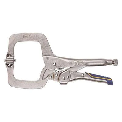 Locking C-Clamps, Locking C-Clamp, Max. Opening 3 3/8, Throat Depth 2 5/8, Clamping Force Not Rated, Nominal Clamp Size 11, Number of Pieces 1, Swivel Pad No, Not Tether Capable, Overall Clamp Length 11 1/2, Nickel Plated, Steel, Locking Mechanism Release Lever, Screw Mechanism Adjusts Clamping Pressure, Jaw Width 1/2, Jaw Type C Clamp, Patented Reduced Hand Span Design, Hex Key Adjusting Screw, Swivel Pads Hold Tapered Work