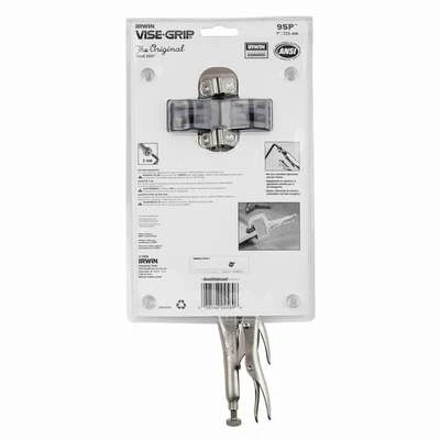 The IRWIN® VISE-GRIP® 2-piece locking clamp set includes nickel-plated, heat-treated alloy steel clamps with micro-adjustment screw mechanisms. 1-handed locking mechanism, easy-turning adjusting screw, and spring-loaded release lever.