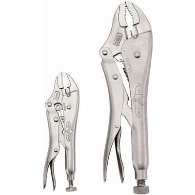 This locking plier set include locking pliers in a range of sizes for various applications. Locking pliers feature adjusting screws and release triggers to help provide secure holding and easy use on a wide range of objects.